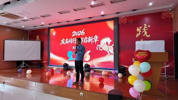 作為合肥友高的當(dāng)家人,總經(jīng)理陳文正先生上臺(tái)致辭并送上了誠摯的慰問與衷心的祝福。并以長(zhǎng)者的身份,他從工作、生活以及對(duì)社會(huì)、家庭等方面分享了一些寶貴的人生經(jīng)驗(yàn),并鼓勵(lì)大家不斷學(xué)習(xí),每天進(jìn)步一點(diǎn)點(diǎn),不斷成長(zhǎng)。